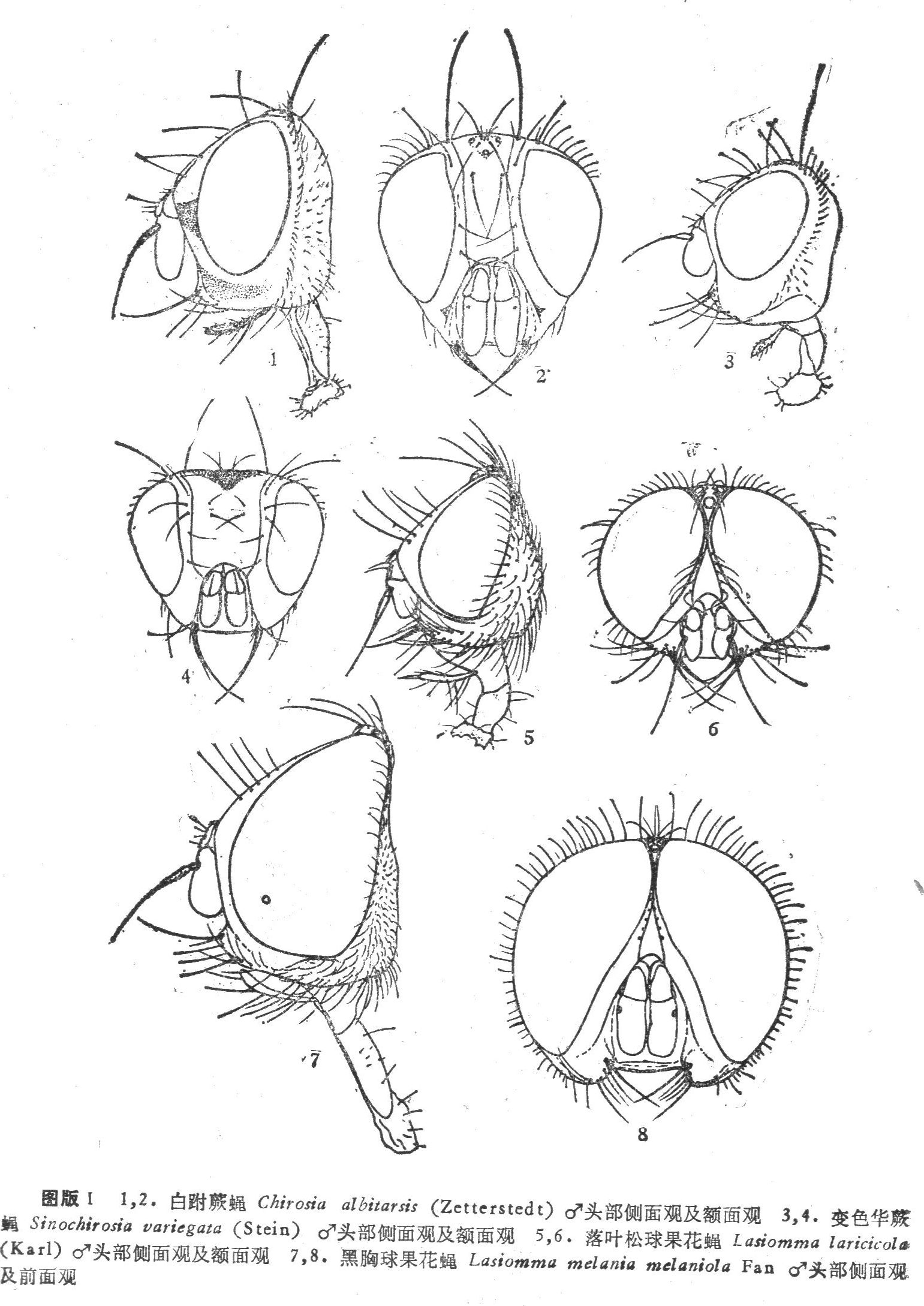形态特征 体长♂ 5—6毫米,♀5.5毫米左右。眼几乎裸,♂额宽约为前单眼宽的2/3左右,间额黑褐以至橙色,在额最狭段间额如线或消失,上眶鬃1对短小,间额鬃小毛状(有时仅一侧存在),紧接着下眶鬃列,后者有鬃9—14个,头前面包括前额、侧额、颊底色橙色,沿...