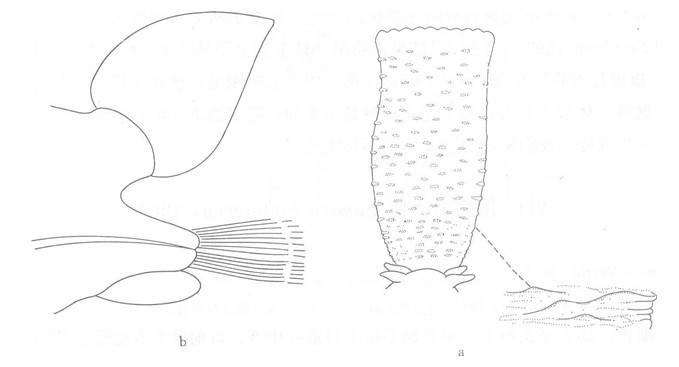 体长0.252-0.805mm,宽0.071-0.112mm。后吸器具2联结片。边缘小钩长0.019-0.042mm。中央大钩全长0.030-0.039mm,基部长0.028-0.033mm,钩尖长0.008—0.014mm,内突0.004—0....