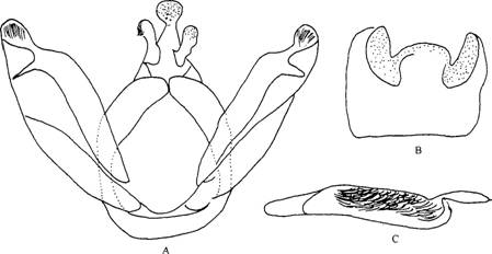 全长1200—1325μm,头长125μm。假眼圆形,10μm×10μm。头眼比=12—13。颚腺的萼部甚膨大,具有两簇放射状的、由短柱组成的花饰,两簇花饰在腹面由一狭长的“桥”相连接;萼的背面还有一近圆形的盔状附属物。颚腺近基部的腺管细长,基端稍膨大。口器较...