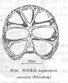 头呈豆形,具不规则方形孔,其基部中央生出7条相同长度、棱柱状的放射梁,支