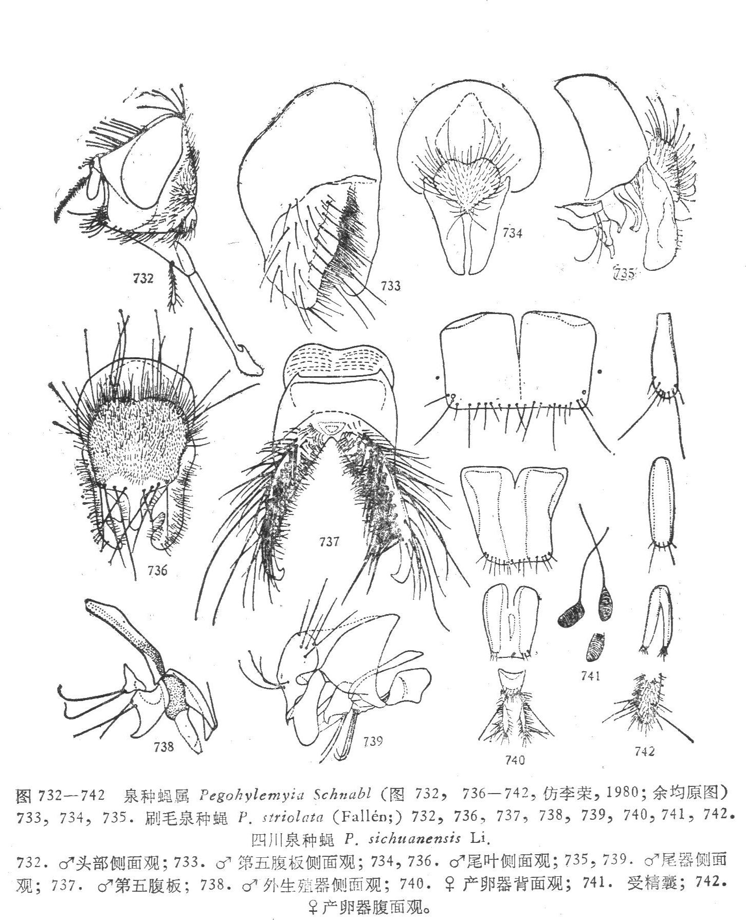 形态特征 体长9—10毫米。♂侧额相接,无上眶鬃而有6—9个下眶鬃,触角芒短羽状,至多为芒基横径的3倍;前中鬃3对长大,并有很多对小毛,肩后鬃1:1但仅内方一对强大,翅前鬃约等于前背侧片鬃长,腹侧片
