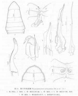 形态描述 此种是本属已知15种中头胸甲最扁平、最薄的一种。头胸甲呈长卵圆形,背面中线从额区至后缘中部有1条颗粒脊,胃、心、肠及鳃区具明显...