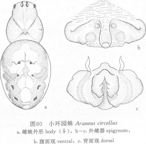 雌蛛体长2.34。头胸部长一1.19,宽1.05;腹部长1.15,宽0.97。背