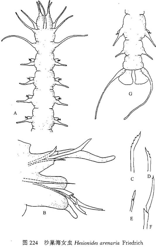 形态特征 体长35—40 mm,体宽(含疣足)4—6 mm,具16个刚节。