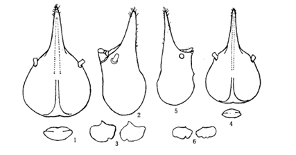 头近圆形,中部稍后最宽,后缘微凹入,具明显纵缝线,囟管自头中部达鼻端。鼻圆锥形,侧面观鼻与头之连线较平直,鼻上翘不显,上颚具明...