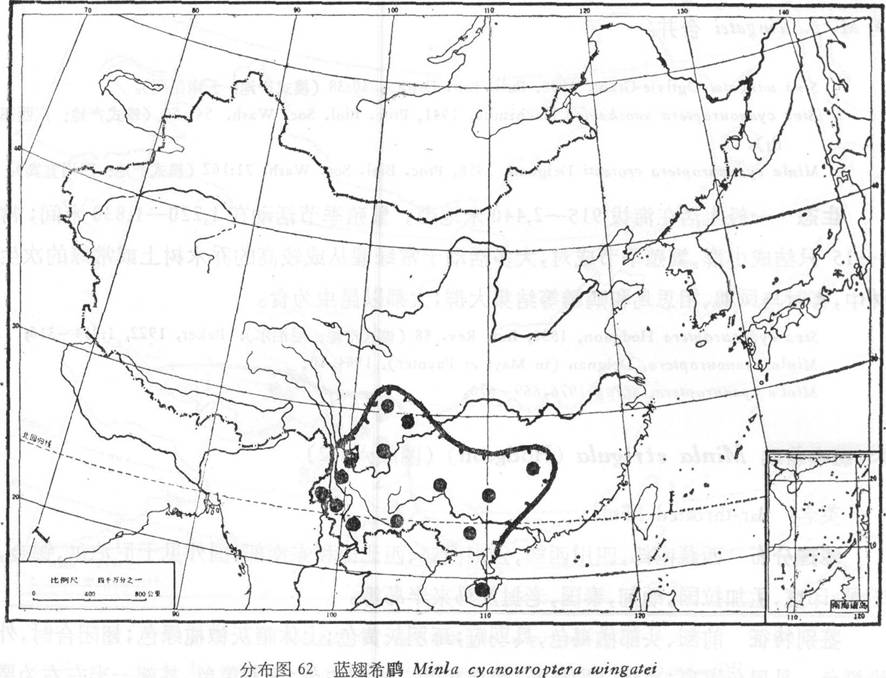 形态(依据西南亚种的标本) 雄性成鸟:头和颈部暗蓝灰色;眼先近黑色,眼圈白色;上体灰绿色;小覆羽和大覆羽均为褐色,但边缘及末端浅黄绿色近似灰白色;小翼羽和初级覆羽黑色;