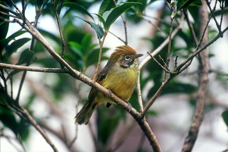 形态(依西藏绒辖河谷的标本)额基淡茶黄;头顶灰褐;眼后有一小白点;眼先、贯眼纹及耳羽等均黑褐;脸浅自;背部橄榄褐;两翅覆羽大都与背同色,初级覆羽黑,大覆羽砖红;