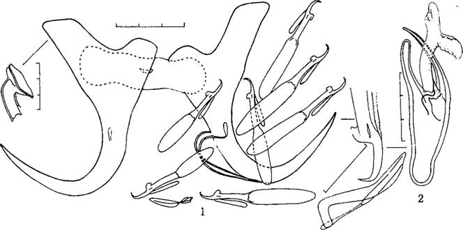 边缘小钩全长0.035--0.049mm(Strelkov,1971...