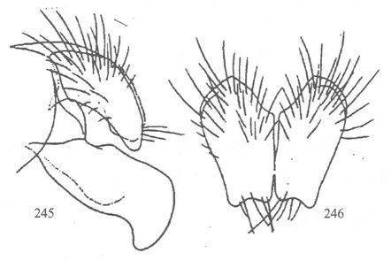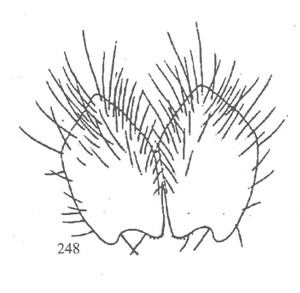 形态 ♂:体长7.5—8.5mm。眼生浅棕色较长纤毛;额为前单眼宽的1.5—2.0倍宽;下眶鬃6—7对,在侧额下半部,上半部裸,无上眶鬃;侧额、侧颜和颊具灰白粉被;侧颜约为触角第三节宽的1.5—2.0倍;触角第二节和第三节基部带红棕色,第三节长为宽的3倍弱;...