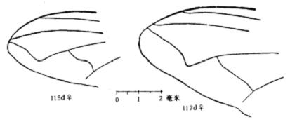 形态 ♂:体长5.8mm。额狭于前单眼宽,间额在中部消失;侧额下半部具4—5对下眶鬃,上半部裸;侧额、侧颜和颊具暗灰色粉被;侧颜约与触角第三节等宽;触角黑,第三节长为宽的3倍;芒长羽状,多数芒毛为触角第三节宽的1.5倍;颊前缘具2列上倾口缘鬃;颊毛和下后头毛...
