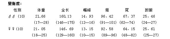 头及颈具纵纹。三级飞羽的白色月牙形宽,但肩部月牙较窄。外形厚重,胸深,嘴厚,前额长缓而下,头顶平坦,外貌看似凶狠。飞行时初级飞羽外侧羽上具小块翼镜。翼合拢时至少可见六枚白色羽尖。第四年成
