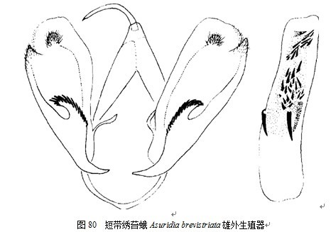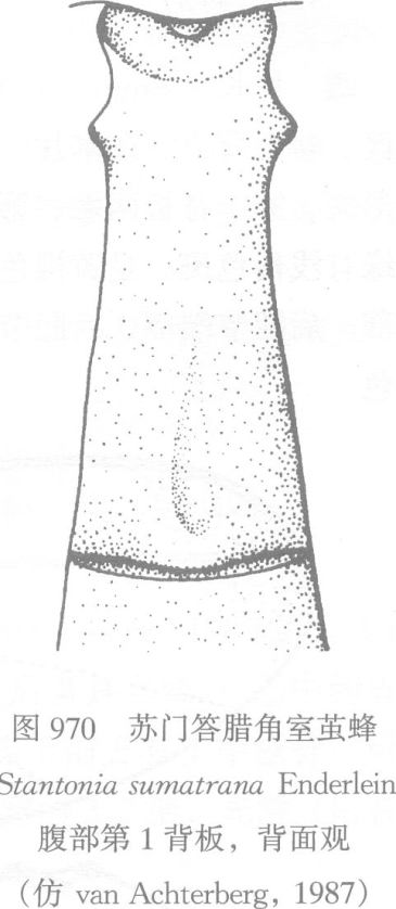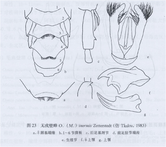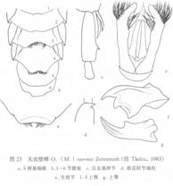 胫节端部0.4、第l背板、第2背板端部、第3—4背板中央部分、以后背板全部暗褐黄色;产卵管鞘黑褐色。翅痣...