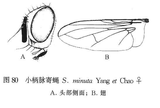 著宽于侧额,额鬃7根全部向后方弯曲,前方一根下降至侧颜不达触角第2节末端水