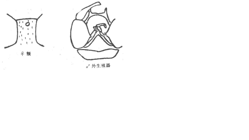 雌蠓:头部两复眼分离,上、下横缝形成菱形,有纵缝,复眼光