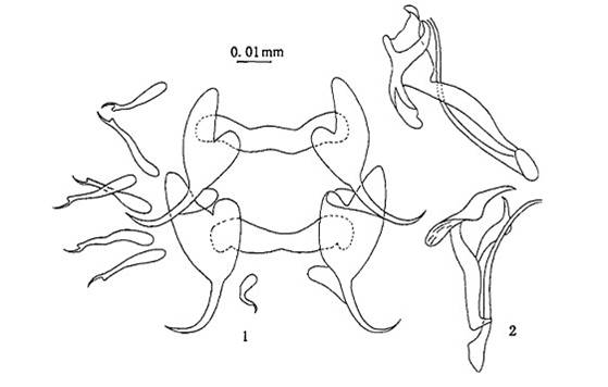 体中等大小,体长0.708—0.809mm,宽0.238—0.286mm.后吸器大小0.095—0.105×0.1 14—0.1 33 1mm咽大小0.050—0.053mm.边缘小钩粗壮,钩柄、钩尖明显,长O.0 1 3—0.030 mm,钩尖...