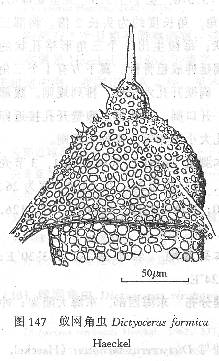内壳壁薄,具规则的六角形网孔(间或有五角形的)。孔间桁条瘦细,其节点上有短小的辅针。外壳直径约为内壳的三倍,具三角形网孔。放射骨针三片棱状,骨针末端各棱缘上有三个卷曲的小分枝。