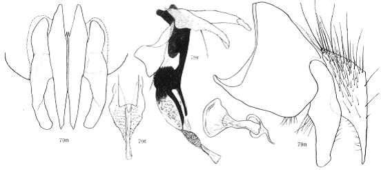 形态 ♂:体长9.5mm。眼具浅黄色纤毛,不十分密;眼内缘小眼面明显扩大;额约与触角第三节等宽;间额黑,为一侧额宽的3倍;下眶鬃9—10对,几乎达单眼三角前;侧颜具银白粉被,稍宽于触角第三节宽的1/2;触角黑,第三节长为第二节长的2倍,芒羽状;颊具银白粉被,...