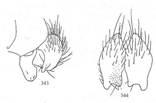 形态 ♂:体长6.0—6.5mm。眼生中等长浅色纤毛;额最狭处等于前单眼宽,间额在此处消失;下眶鬃5—6对,无上眶鬃;侧额、侧颜和颊具灰色粉被;侧颜稍狭于触角第三节宽的1/2;触角黑,第三节长为宽的2.5倍强,芒长羽状,最长芒毛超过触角第三节宽;颊高约为眼高...