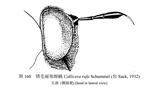 褐色,略覆黄粉被;芒基部黄色,端部褐色。中胸背板黑色,肩胛、盾沟、翅后胛密覆黄粉被,背板中部具...