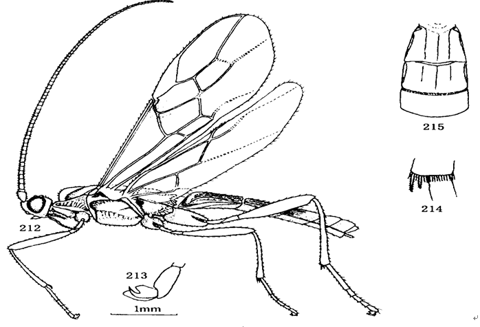 头:触角70—75节,触角长于体长。背观复眼长为上颊长度的1.7倍;上颊在复眼后方稍收窄。OOL:OD:POL=5:6:3。头顶和上颊光滑;额凹入,光滑。脸光滑,中央稍隆起。唇基凸,具刻...