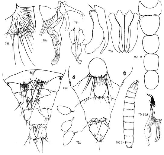 形态 ♂:体长7.0mm。眼密生棕色长纤毛;额约等于前单眼宽;侧额,侧颜和触角均被灰黄粉被;间额中段消失;下眶鬃达单眼三角,无上眶鬃;侧颜为触角第三节宽的1.25倍;触角第一节黄,第二节黑,第三节黑褐色;第三节长为宽的3.1倍;芒长羽状,最长芒毛为触角第三节...