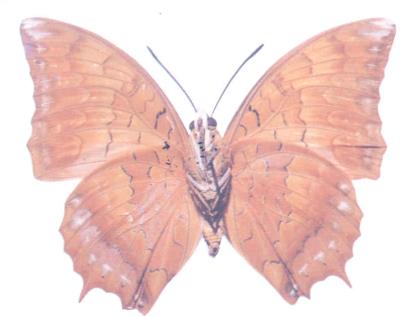 褐色,前翅外缘带黑色,内侧波状,亚缘线波状;后翅亚缘有1列眼
