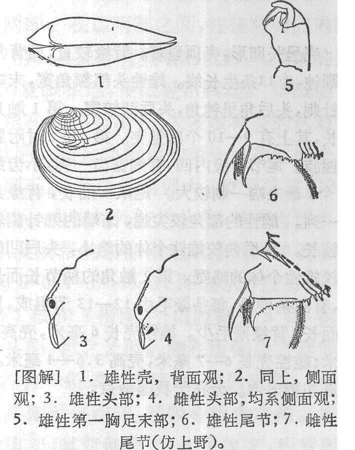 线上具细刚毛。雄性的额角较宽,末端较圆。第1—2对胸足为执握肢。