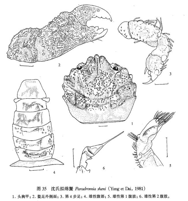 及螯足除指节外均具绒毛和长刚毛。头胸