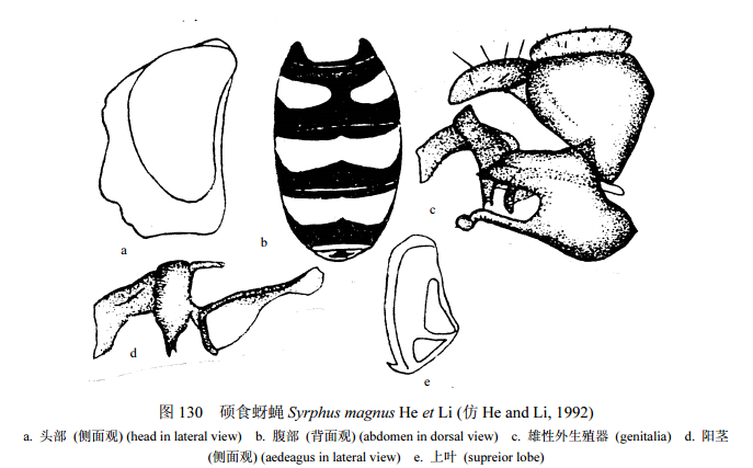 雄性 头顶黑色,单眼三角着生较后,单眼前覆黄褐色粉被;额黑色,两侧沿眼缘覆黄白色粉被,额突前方正中