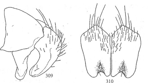 形态 ♂:体长约7.5mm。眼疏生短纤毛,上部小眼面稍大;额宽稍大于或等于前单眼宽;间额如线;侧额、侧颜和颊具灰白粉被;下眶鬃6对,分布于侧额下半部,上半部裸;侧颜宽仅稍大于触角第三节宽;触角黑,第三节长为宽的2.5倍;芒短羽状,最长芒毛略长于触角第三节宽的...